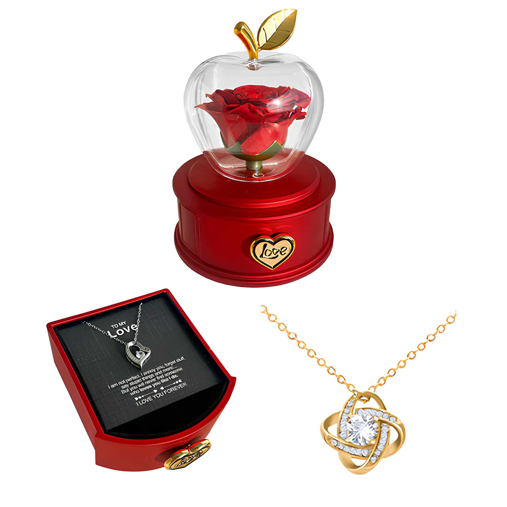 Marizet® Kişiye Özel Cam Gül Kutusu & Aşk Kolyesi