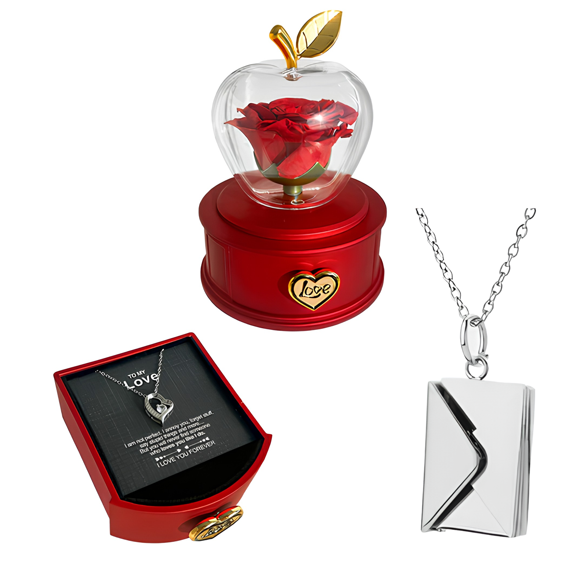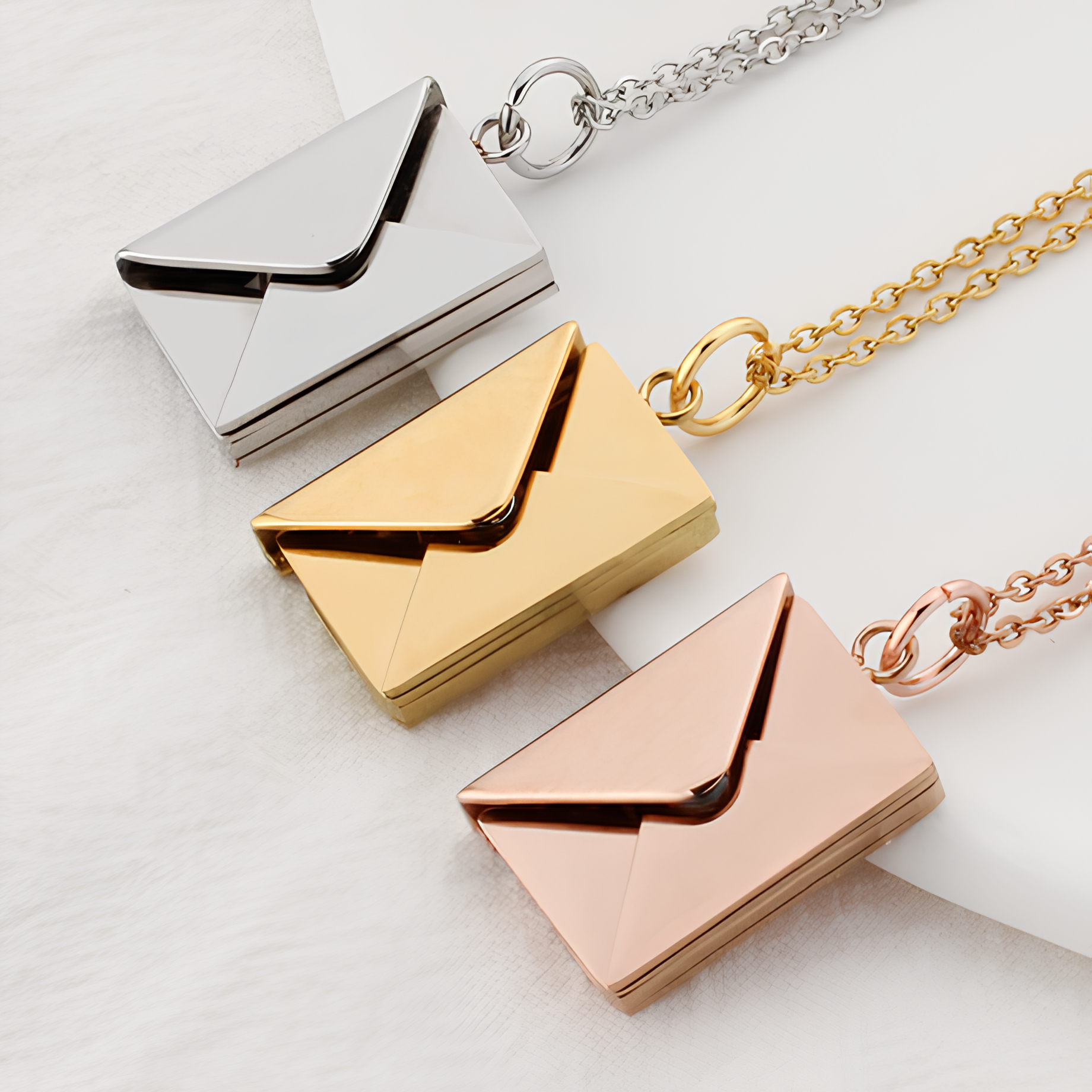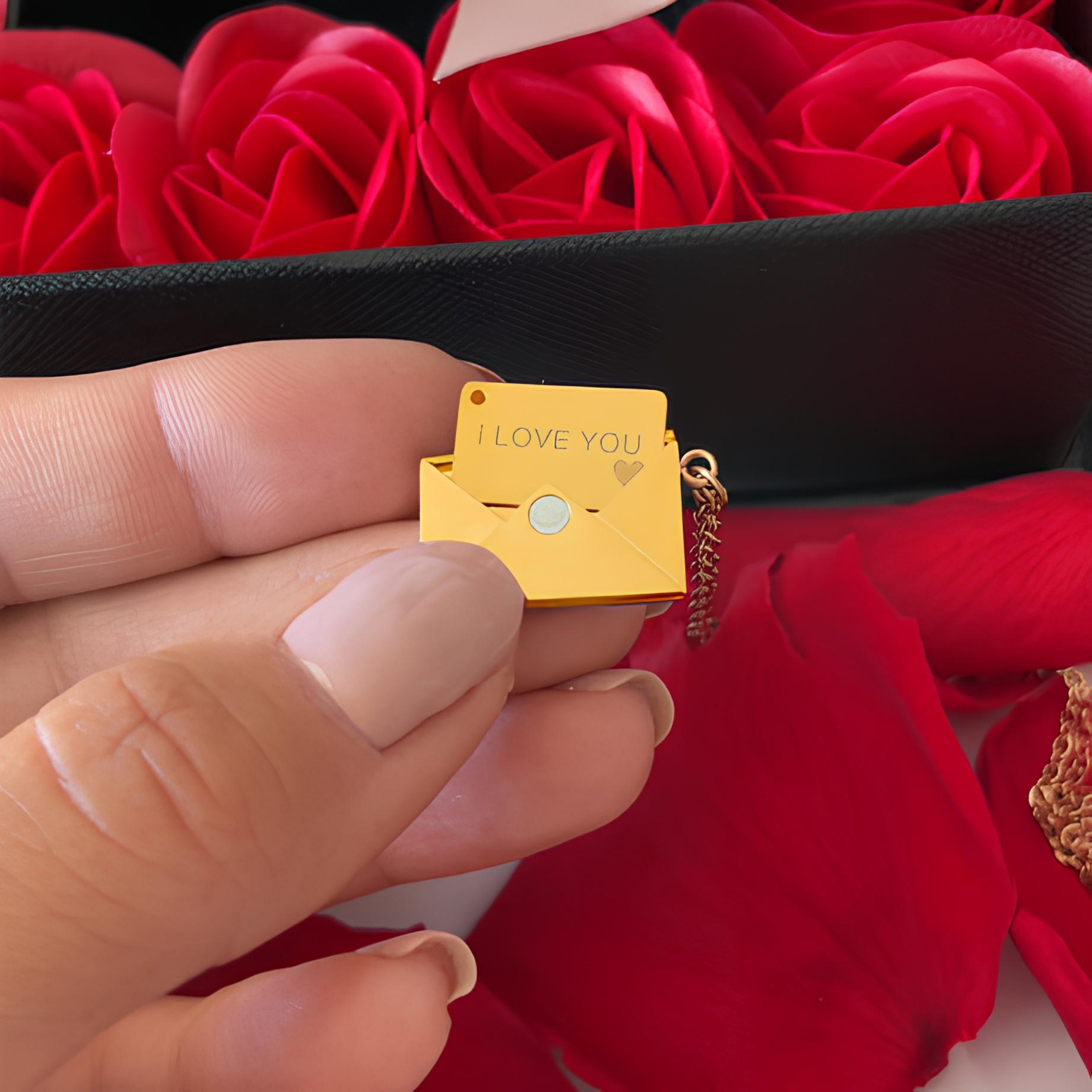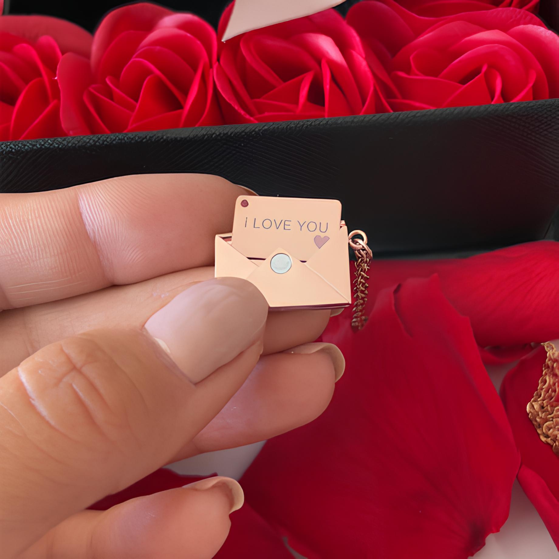 Marizet® Kişiye Özel Cam Gül Kutusu & Zarf Kolyesi