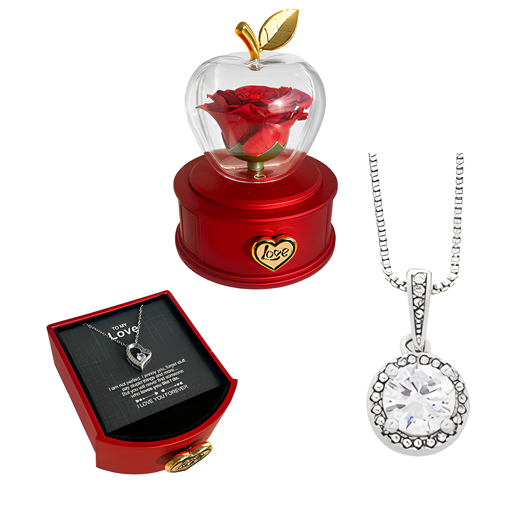 Marizet® Kişiye Özel Cam Gül Kutusu &  Zarif Kolyesi