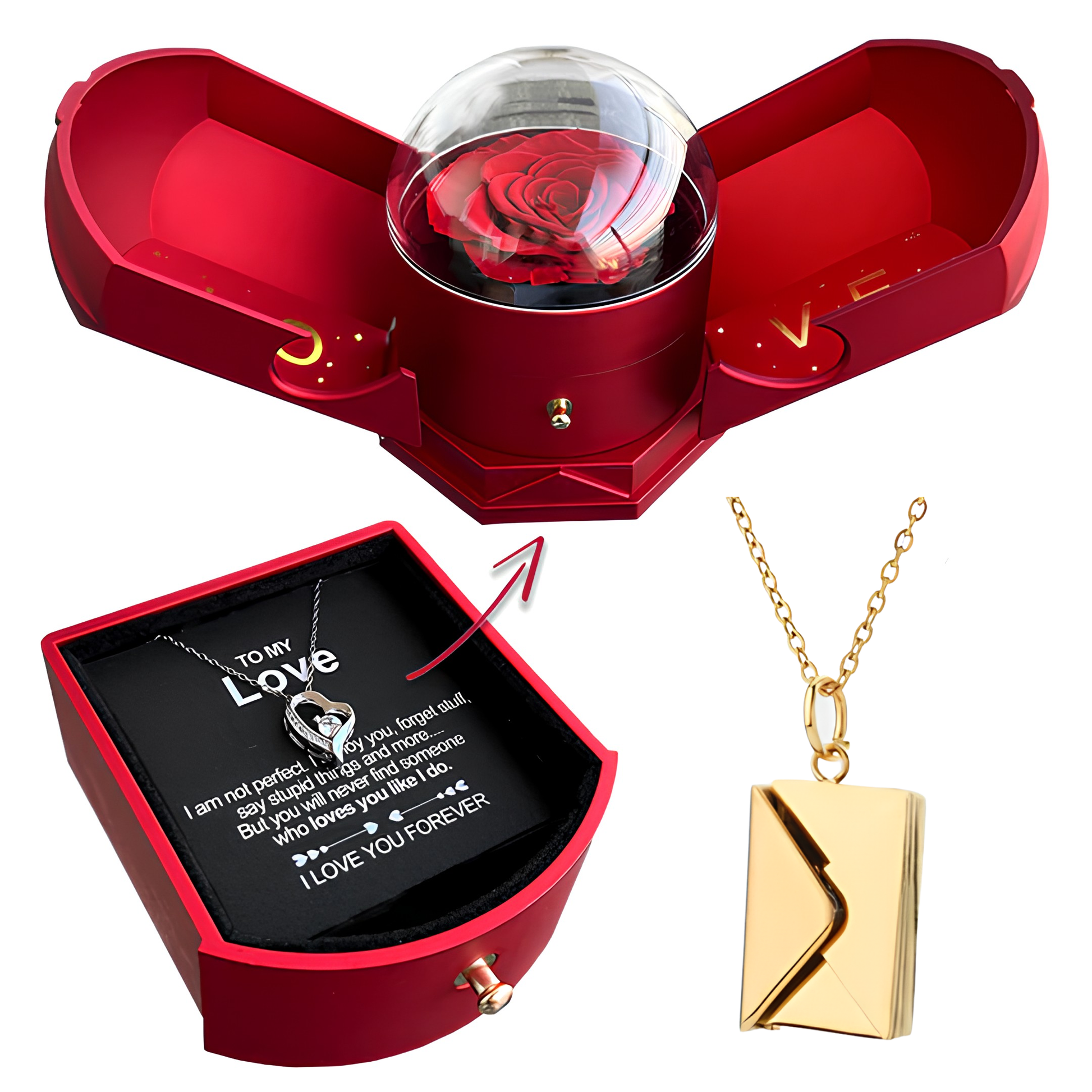 Marizet® Kişiye Özel Saklı Gül Kutusu & Zarf Kolyesi